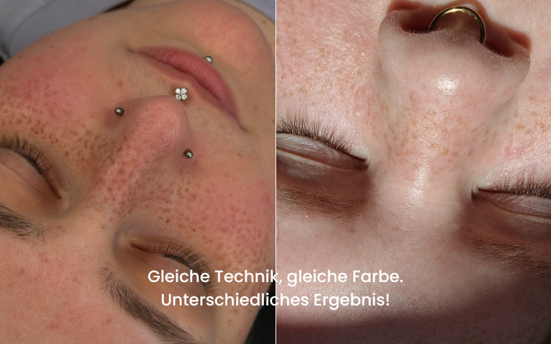 und warum dieselbe Farbe nie auf jeder Haut gleich arbeitet. - Woran du erkennst, ob eine Farbe für die Haut gerade zu schwer, zu dicht oder zu dominant ist – noch während der Behandlung.