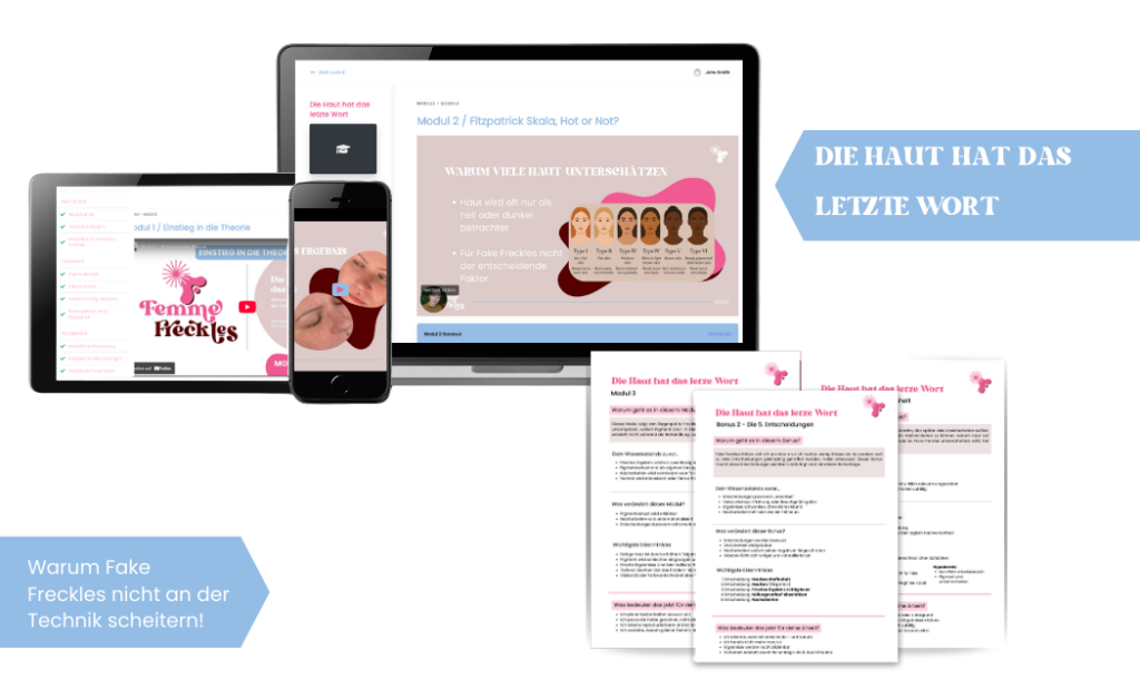 Ein kompakter Onlinekurs für PMU- & Tattoo-Artists, der dir hilft, Hautreaktionen bei Fake Freckles besser zu verstehen und sicherer zu entscheiden – ohne Rätselraten.
